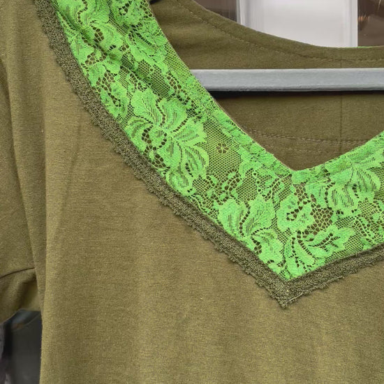A beautifully flattering, feminine top with enchanting fairy vibes 🌿✨ Crafted in a soft olive green fabric and finished with vibrant lime lace detailing, this piece is designed to stand out while remaining effortlessly wearable.